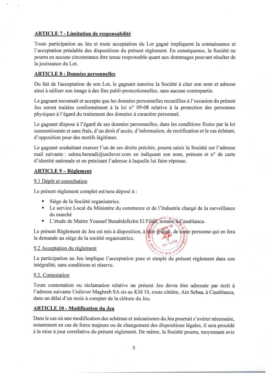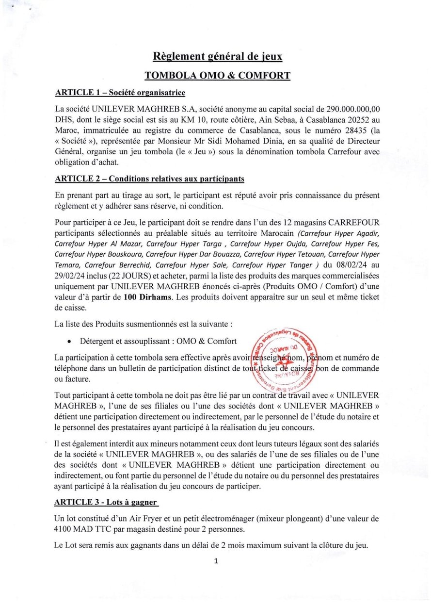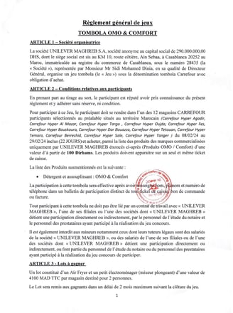 Règlement général de ieux TOMBOLA OMO & COMFORT