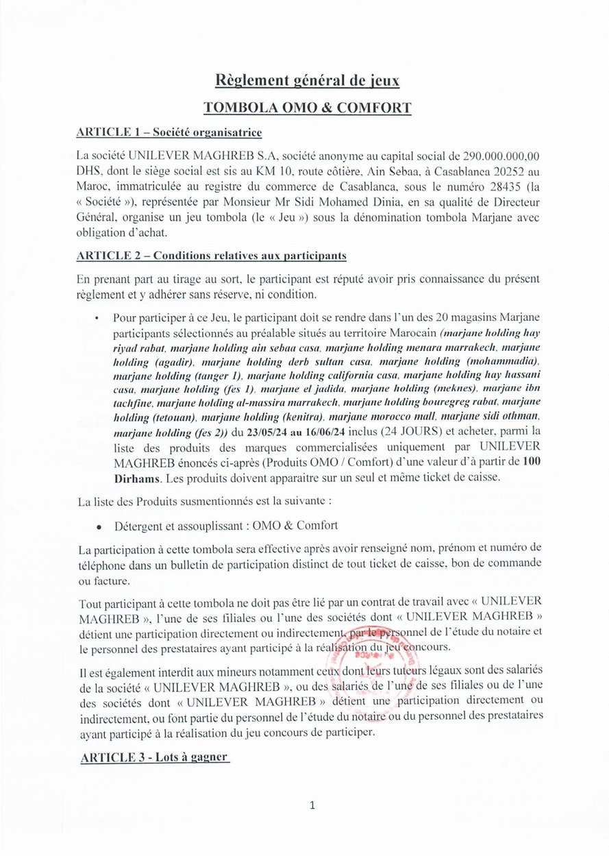 Règlement général de Jeux TOMBOLA OMO & COMFORT